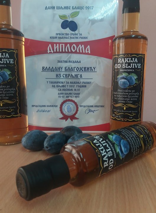 Na proteklom Novosadskom sajmu rakije od šljive iz 2012. i 2014. godine Poljoprivrednog gazdinstva Vladana Blagojevića iz Svrljiga, osvojile su dve zlatne medalje kao najbolje u konkurenciji.